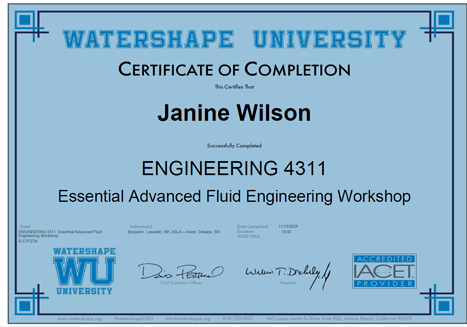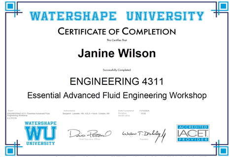 - Advanced Fluid Dynamics, WU (Watershape University)