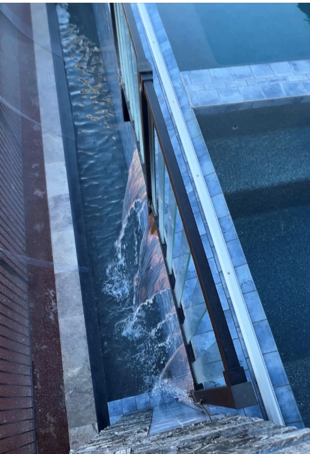 I was hired by a homeowner to evaluate and determine the reasons that this infinity pool had problems. And this is the problem that the homeowner described to me. The basin would overfill water would flow over the top of the basin, and then the homeowner had to come up with ways to prevent that from happening. The other problem was, as it was flowing from the spa over into the basin, so again, as it was flowing over from the spa into the basin, the swimming pool water would decrease, but the spa water would stay at the same elevation or level. And so, the owner wanted to know, how could this be prevented.